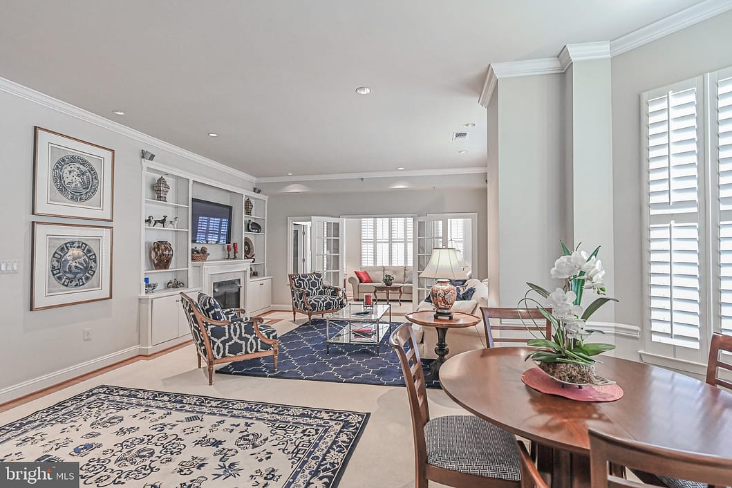 Luxury Penthouse Unit with quiet northeastern exposure, plenty of natural light throughout, and 1,641 sq. ft. living space. This spectacular open floor plan offers 10 ft. ceilings, 2 elegant bedrooms, 2 full bathrooms, kitchen with stainless steel appliances, spacious living room area with french glass doors, beautiful dining area, and sunroom with ceiling fan. Features include interior custom fitted shutters throughout all windows, mirror built-in walls with power outlets, gas fireplace with marble hearth and custom surround trim, jetted bathtub in primary bathroom, built-in surround sound system in living room, walk-in closets with custom shelving units, and dimmable lighting features throughout unit.