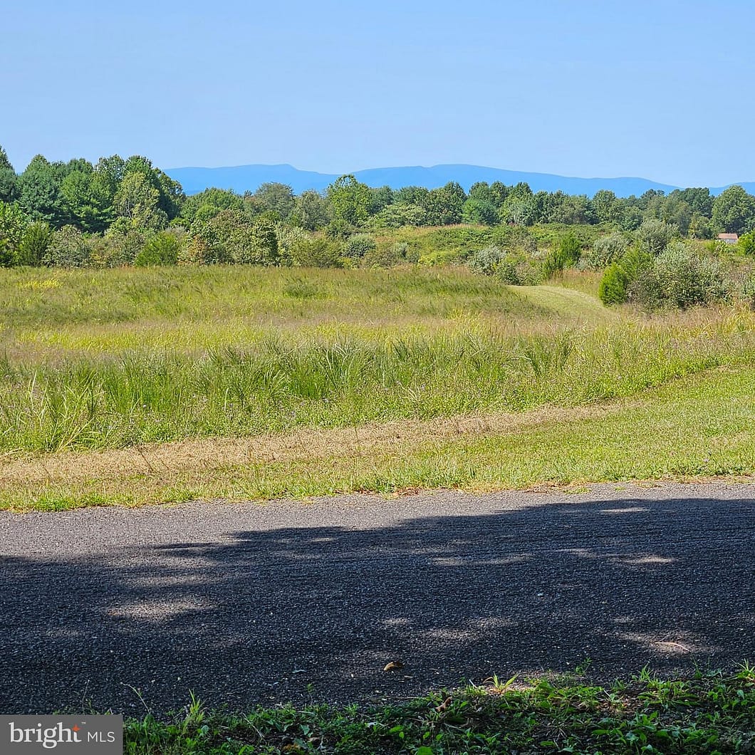 This lot has a great view of an open field and distant mountains.